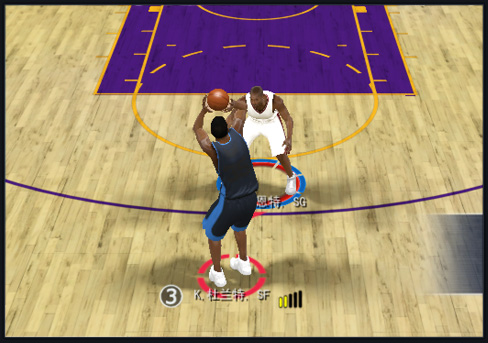 投篮键是“D”。先移动至指定的位置,然后按“D”键就可以投篮啦!投篮是讲究手感的,请注意按键释放的时间哦,在今后的游戏过程中你可以慢慢体会。