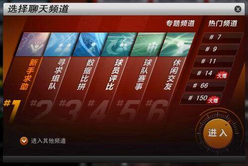 在NBA2K Online中,玩家进入游戏就会被分配到某个聊天频道。你可以通过这里看到你当前所在的频道号,也可以点击该按钮切换到别的频道: