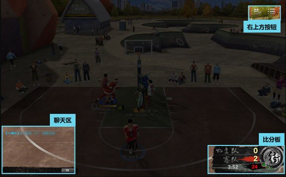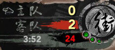 · 底部区域:街球比赛是不分小节的,比赛总共4分钟,每次进攻限时24秒。左方白色字体代表剩余时间,红色代表本次进攻剩余时间。