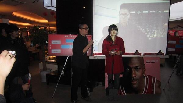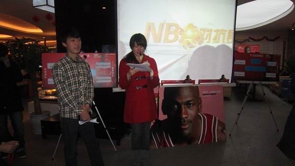 18:45份,由腾讯NBA2K OnLine运营经理Neo发言宣布正式开始!2位主持人登台,(腾讯NBA2K OnLine项目组的Scott,松江工程技术大学学生孙怡倩)拉开了决赛的序幕。